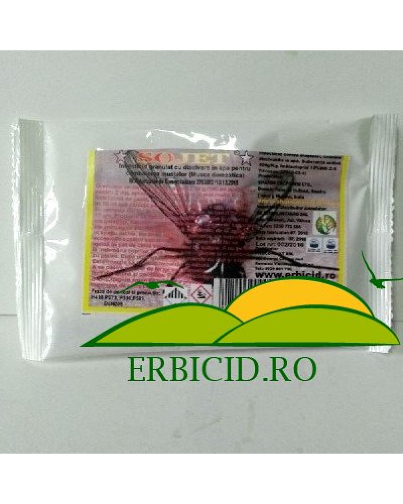 -Solutia in apa sub forma de pasta pentru aplicare cu pensula, in locuri frecventate de insecte.Pentru prepararea pastei se amesteca 0,25 kg de Sojet cu 0,25 L de apa calda, pentru a proteja o suprafata de 100mp.Dupa 15 minute pasta poate fi aplicata cu pensula sau cu roller-ul pe suprafata de tratat.Se pensuleaza din loc in loc, in benzi cu latimea de aproximativ 15cm.