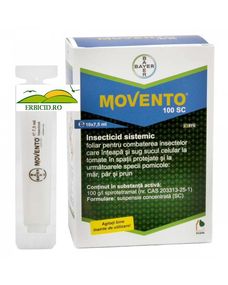 Movento 100 SC conţine noua substanţă activă spirotetramat, din grupa chimică ketoenoli, care manifestă un nou mod de acţiune, inhibarea biosintezei lipidelor.