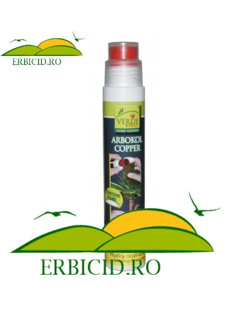 Arbokol Cupru este un produs " best seller ", folosit ȋn ȋntreaga lume de catre agricultorii amatori, dar ṣi de profesionisti.Ȋmbunǎtǎțeṣte rezistența plantelor la atacul paraziților.Mastic cupru cu efect curativ pentru toate tipurile de altoire: Pasta gata de folosire cu adaos de cupru , aplicabilǎ cu pensula.Potrivit pentru toate tipurile de altoire.Timp minim de formare a peliculei : 1 orǎ.Arbokol poate fi folosit pe toate tipurile de plante, arbori ṣi arbuṣti , cu scopul de a proteja diverse tipuri de rani ( tǎiere, altoire). Prezența cuprului ȋmbunǎtǎțeṣte rezistența plantelor la atacul de boli fungice ṣi la condițiile de mediu nefavorabile. Aplicați un strat subtire, omogen cu pensula cu care este prevǎzut recipientul.Odatǎ formatǎ pelicula, aceasta potejeazǎ fǎrǎ a rupe partea tratatǎ de capac.Ȋntindeți cu grijǎ masticul pentru a evita deshidratarea altoiului. Nu aplicați produsul pe ploaie. Daca produsul este spǎlat repetați tratamentul. Tǎieturile mari de curǎțare trebuie sǎ fie, pe cȃt posibil, netede ṣi ȋnclinate pentru a evita acumularea apei.Mod de prezentare : tub 250g